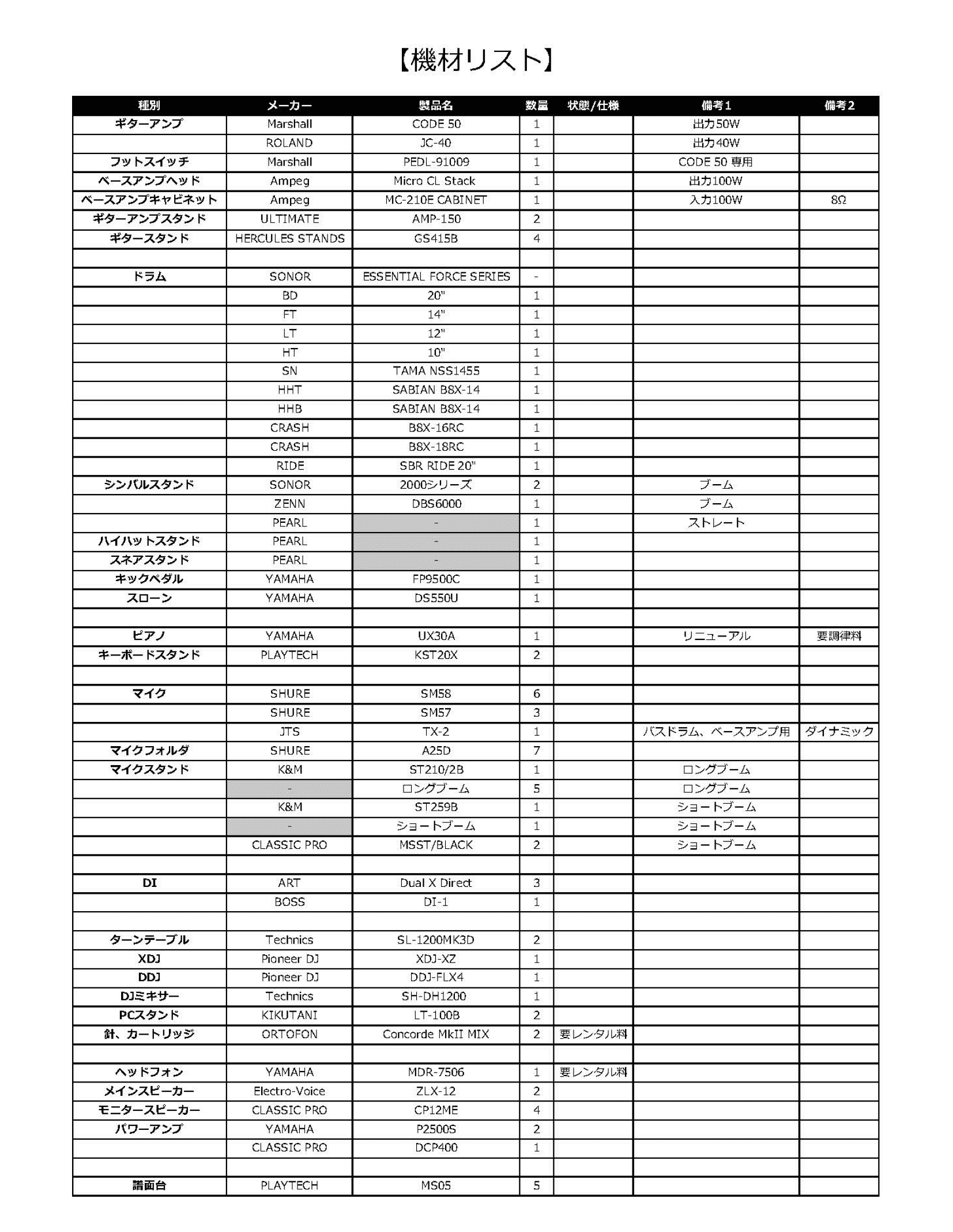 イベント機材 | Music Bar Journey